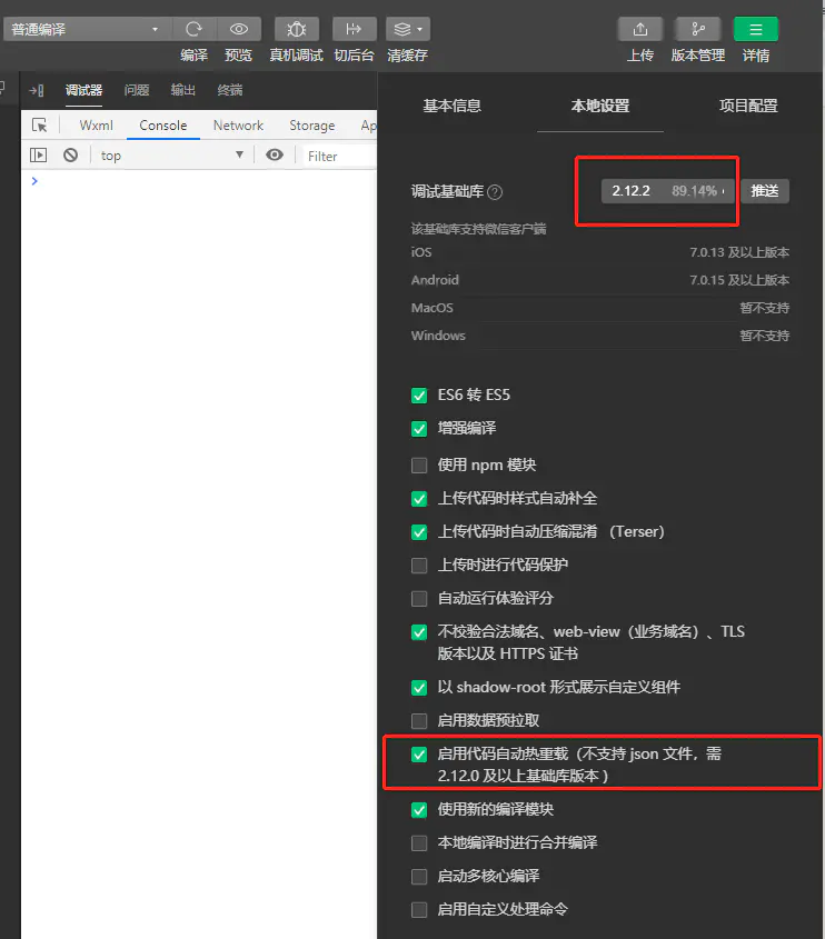 新版本小程序开发启用代码热重载