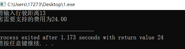 #include<stdio.h> main() { float a,b; printf("请输入行驶距离"); scanf("%f",&a); if (a<3){ b=8; }else{ b=(a-3)*1.6+8; } printf("您需要支持的费用为%.2f\n",b); }
