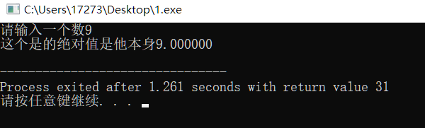 #include<stdio.h> main() { float a; printf("请输入一个数"); scanf("%f",&a); if (a<0){ printf("这个数的绝对值是%f\n",-a); }else { printf("这个是的绝对值是他本身%f\n",a); } }