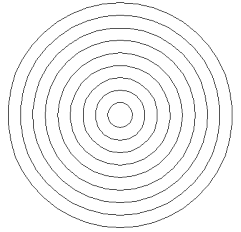 # 用turtle绘制9个同心圆 from turtle import * def moveto(x,y): penup() goto(x,y) pendown() def main(): setup(800,600) radius = 20 # 圆初始半径 offset = 20 # 同心圆每次位移量 for i in range(9): moveto(0,-radius) circle(radius) radius += offset hideturtle() done() main()