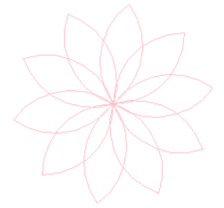 from turtle import * setup(800, 600) pencolor('pink') n = 10 for i in range(n): # 绘制一片花瓣 for j in range(2): circle(80, 90) left(90) right(360/n) hideturtle() done()