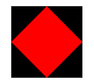# 先画外围正方形 from turtle import * def moveto(x, y): penup() goto(x, y) pendown() color('black') begin_fill() moveto(-100,-100) for i in range(4): fd(200) left(90) end_fill() # 再画内三角形 color('red') begin_fill() moveto(0,-100) left(45) for i in range(4): fd(100*2**(1/2)) left(90) end_fill() hideturtle() done()
