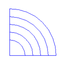 size = 5 color('blue') radius = 40 for i in range(5): # 扇形的个数 fd(radius) left(90) circle(radius,90) left(90) fd(radius) left(90) radius += 20 hideturtle() done()