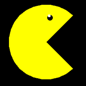 from turtle import * screensize(100,100,'black') def moveto(x, y): penup() goto(x, y) pendown() # 画脸 color('yellow') begin_fill() left(45) fd(100) left(90) circle(100,270) left(90) fd(100) end_fill() # 画眼睛 moveto(10,65) dot(15,'black') # 画高光 moveto(8,70) dot(8,'white') hideturtle() done()