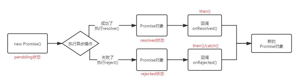一个Promise对象必然处于以下三种状态之一:pending(初始状态)、fulfilled(成功状态)、rejected(失败状态)。需要注意的是一个Promise对象状态的改变有且只有两种情况,并且只能改变一次:1.由pending变为fulfilled状态,2.由pending变为rejected状态。不存在有pending状态变为成功再变为失败的情况!!!!