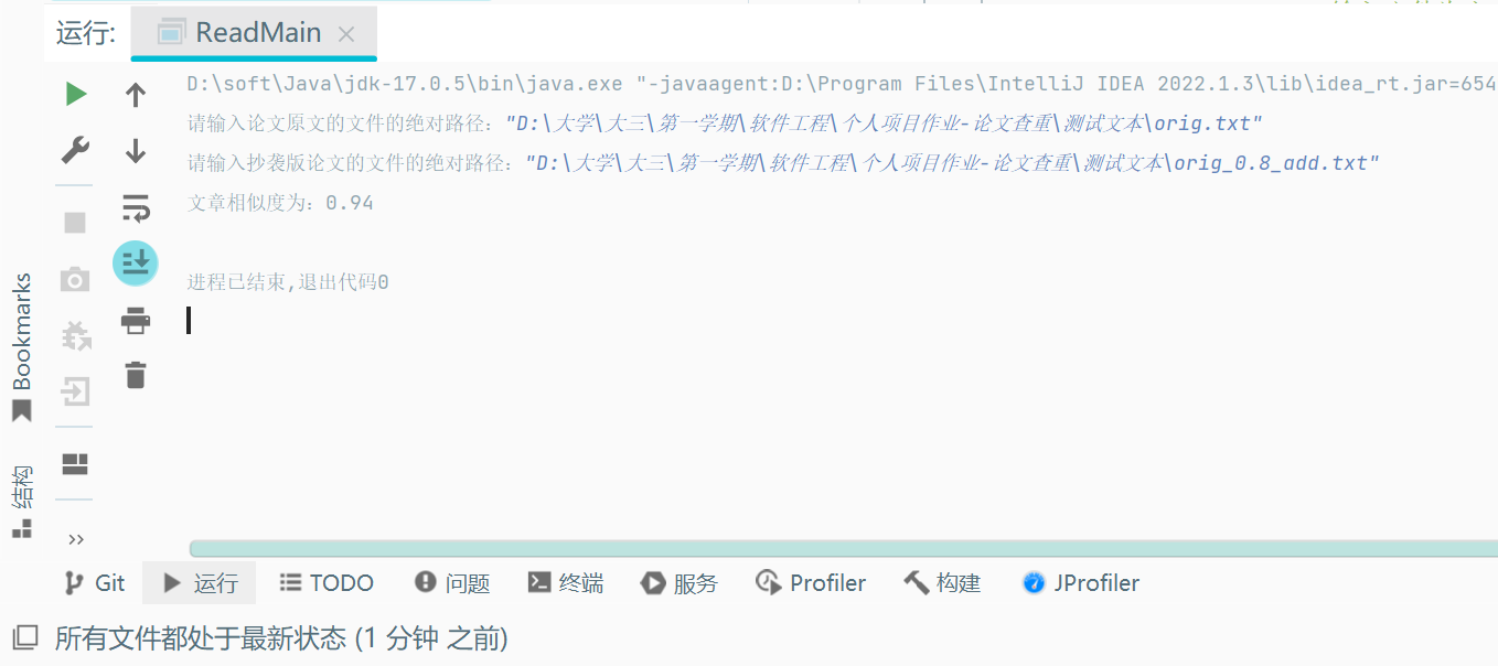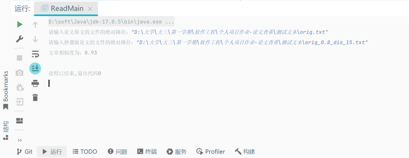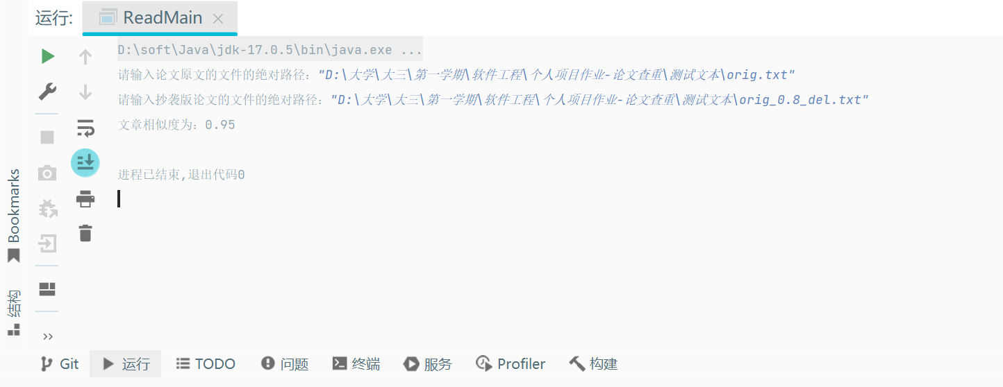 - 从命令行参数给出:抄袭版论文的文件的绝对路径。