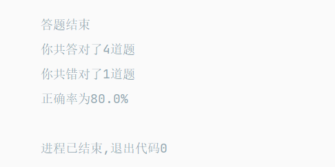 答题完毕后,输出总成绩,包含用户答对题目数、答错题目数和正确率