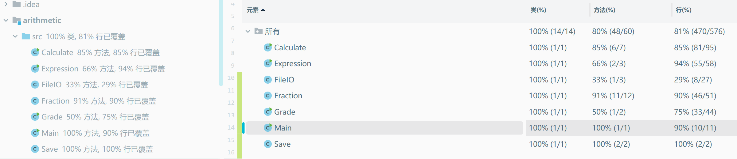 本项目共有6个类:Calculate,Expression,FileIO,Fraction,Grade ,Save