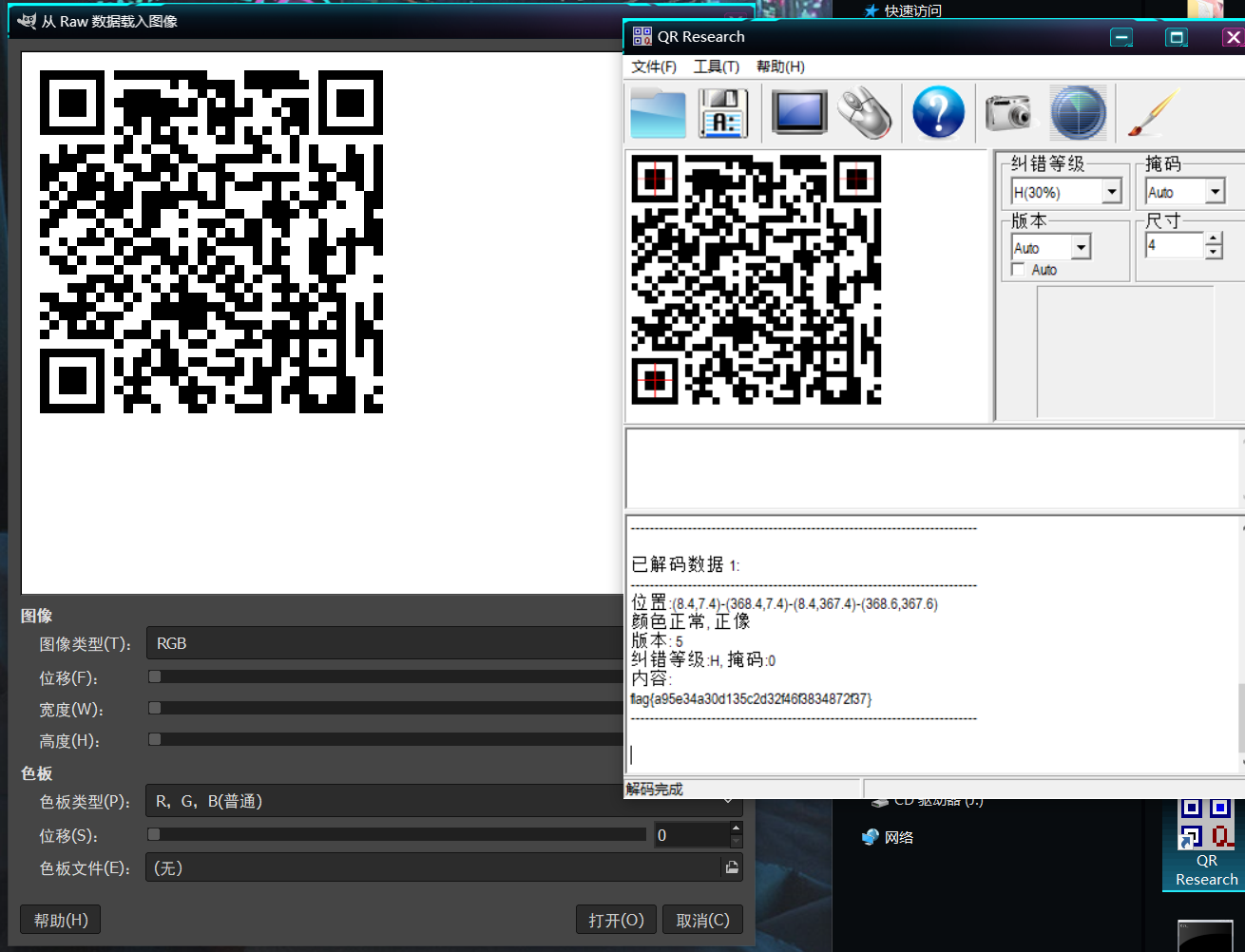 7、得到的data数据放入gimp中,调整宽高为400时得到二维码,扫描得到flag