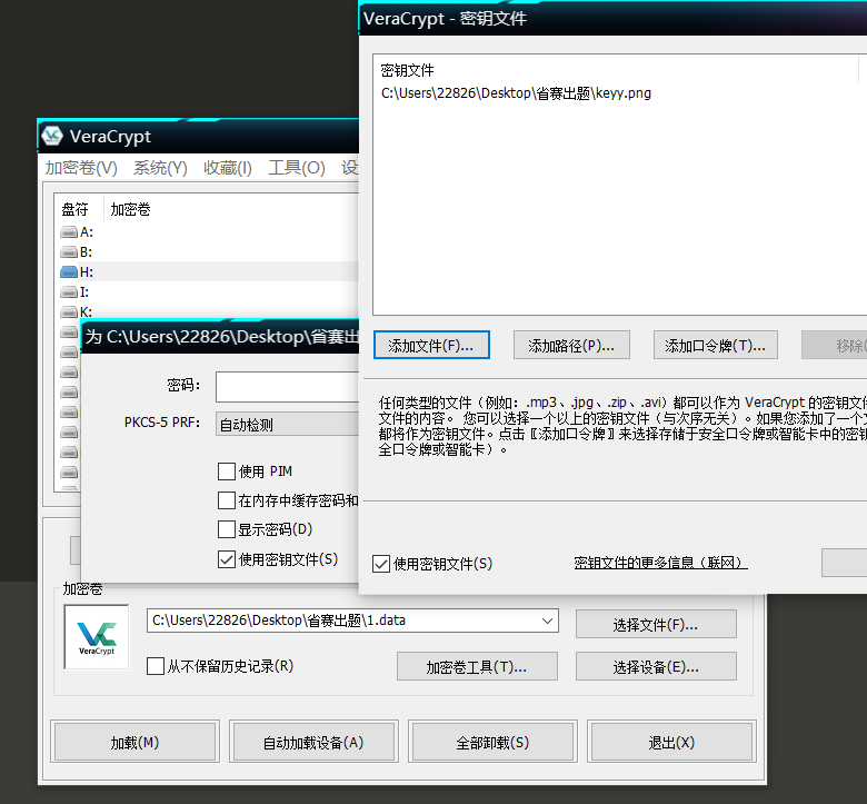 5、将原图的这一块多余的数据删掉后,还原的正确的图作为密钥文件,成功加载tc容器