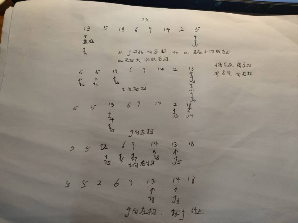 通过(奇数次交换则j向左扫,偶数次交换i向右扫)的规则,-------