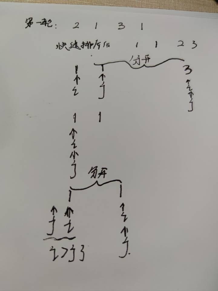 这就保证了基准一定可以在正确的位置且,比基准小的在左边,比基准大的在右边.--------
