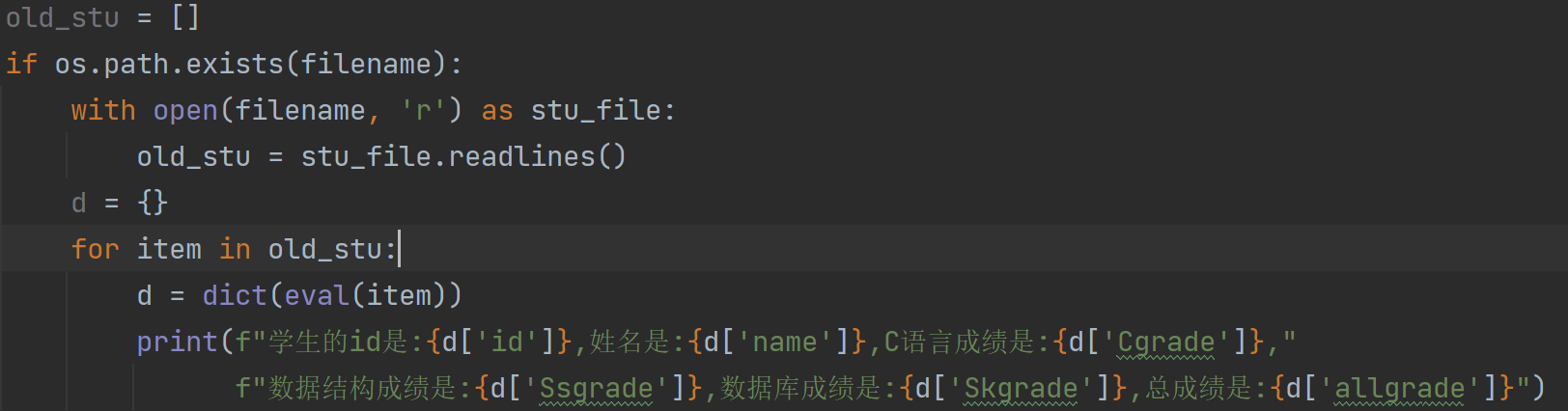 我这里文件中的数据都是这样的,通过readlines()读过来的都是字符串;其实这里不要dict()都可以。