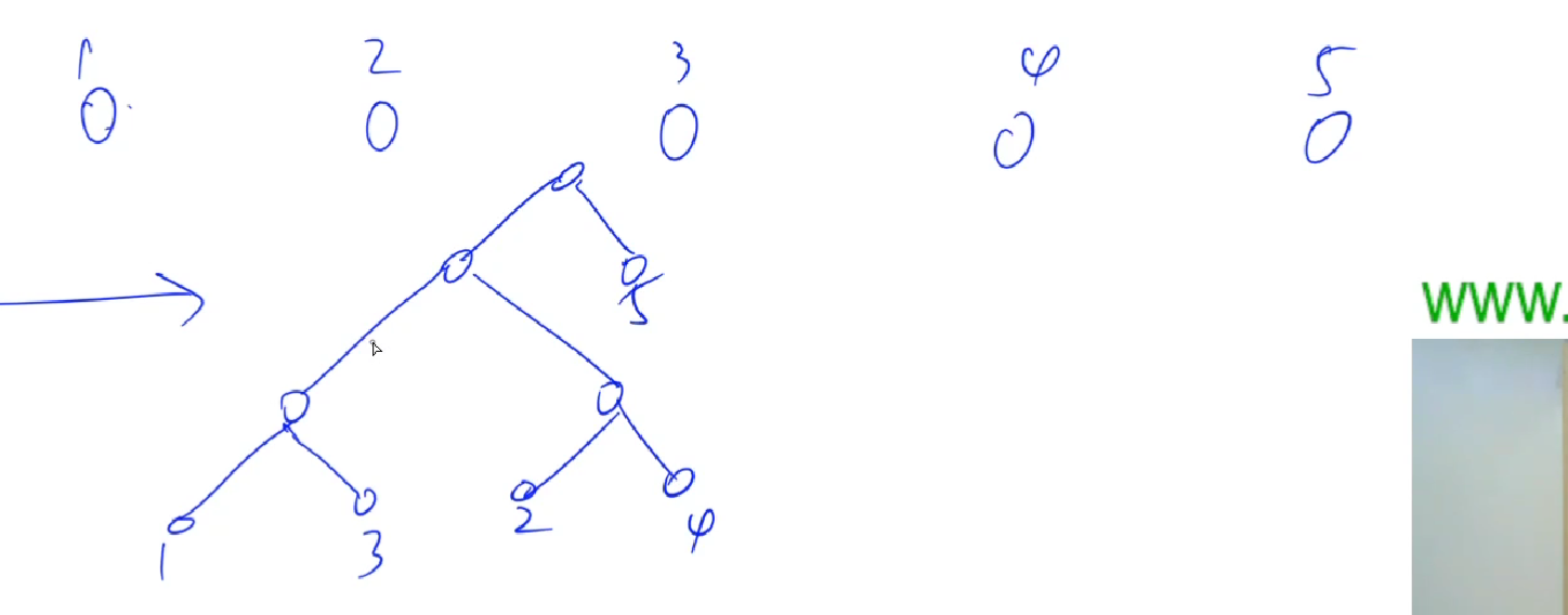 在符合这样一个选择合并规则后,我们可以发现其每一次选择都可以生成一颗二叉树;