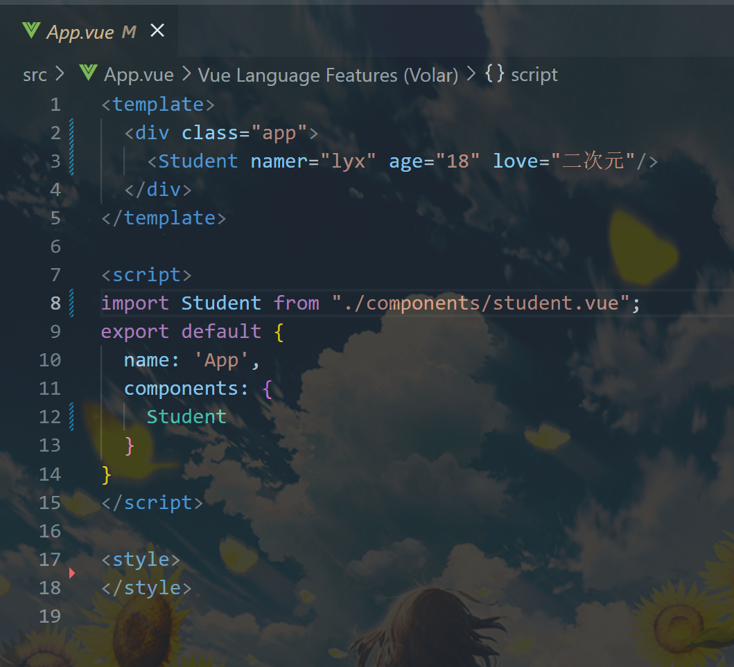 如图这是我App父组件,直接传值给子组件student