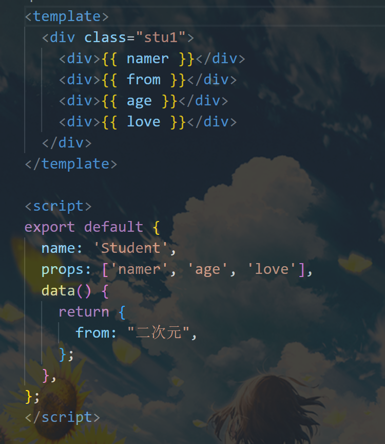 而且props中的数据是比在data中写的数据优先级更高,我们甚至可以在data中写: