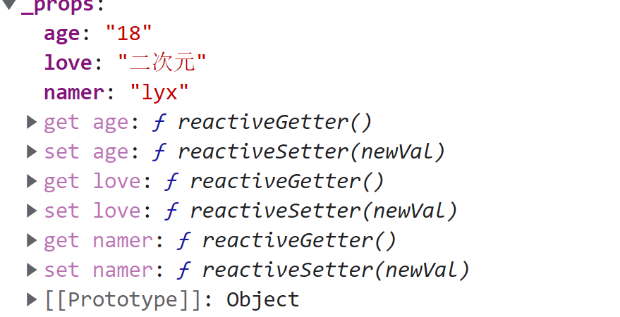 兄弟们感受到了什么?是不是用props注册的数据属性也到vc身上了,而且还有getter与setter,