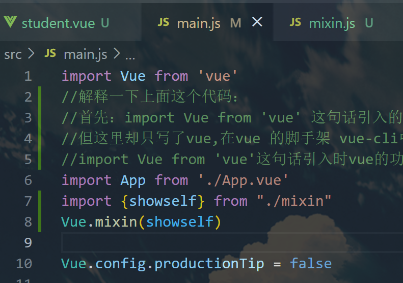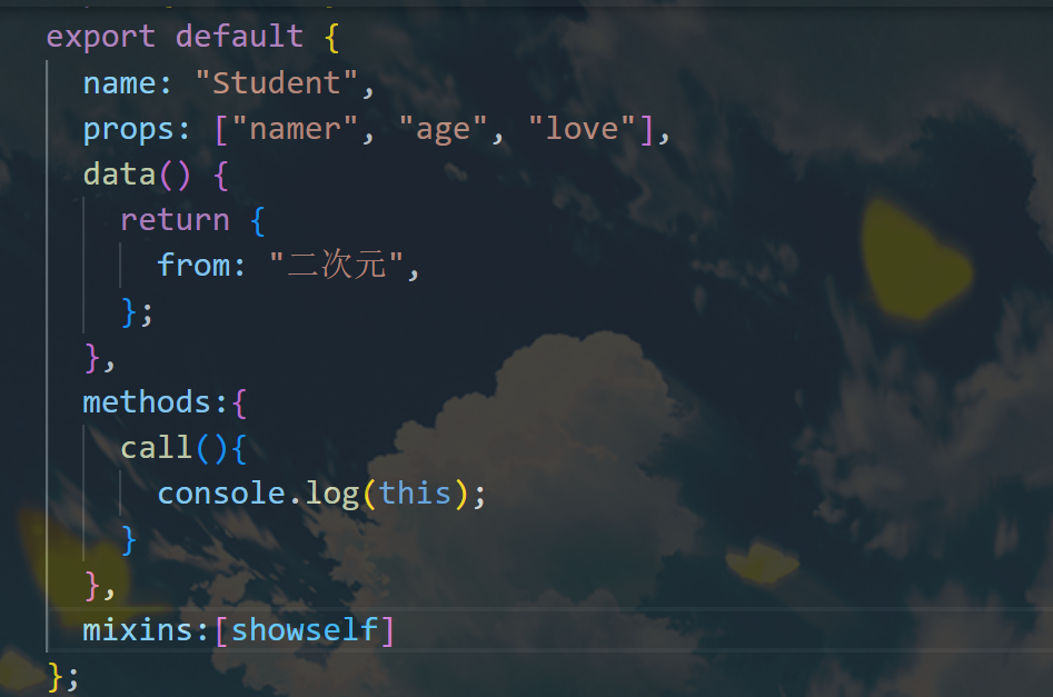 在其中通过mixins这个配置项表示要用,然后其会将这个与我student.vue中的methods做个融入,当发生冲突时,以我组件中为主