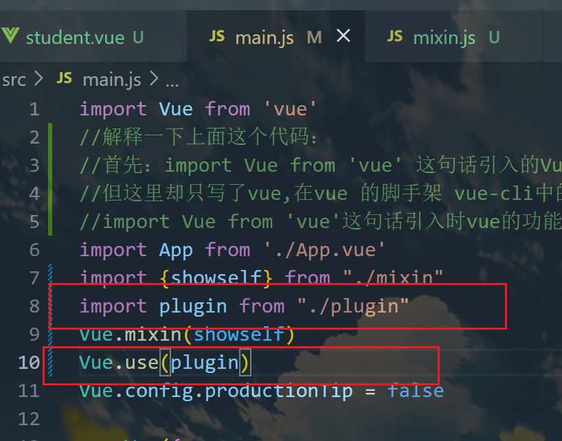 当我下载了一个插件时,我想用那么如图应用,在main.js中