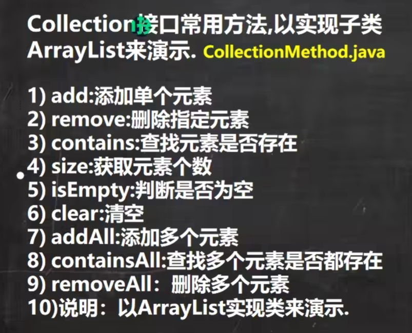 首先:Collection是个接口类,其身上有许多方法都是由其子类实现