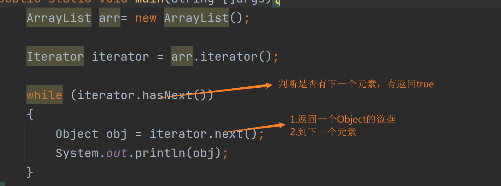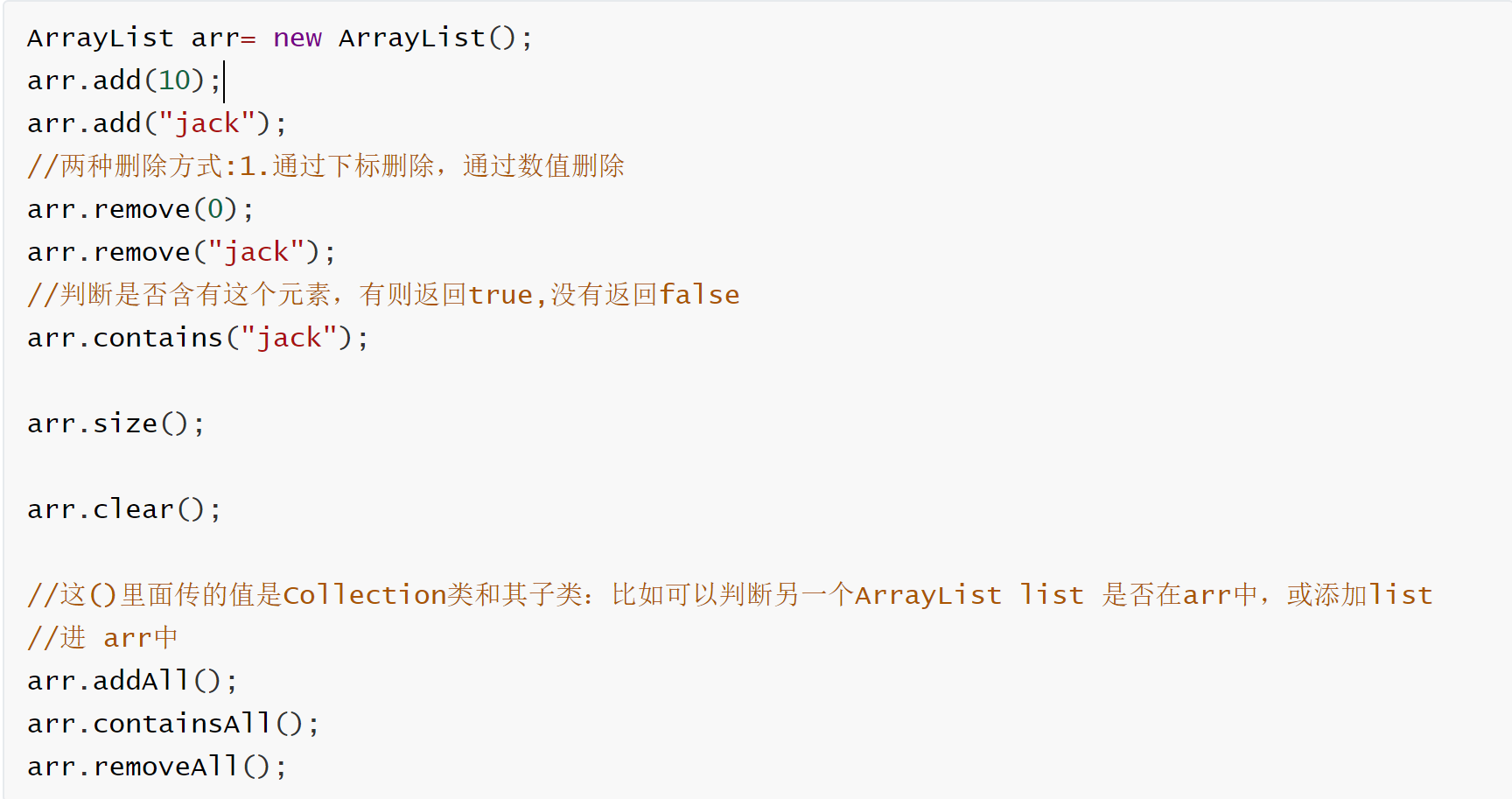 注意:这并不是说可以像数组一样( ArrayList arr)arr[1],这样用下标直接访问,还是要用迭代器来访问