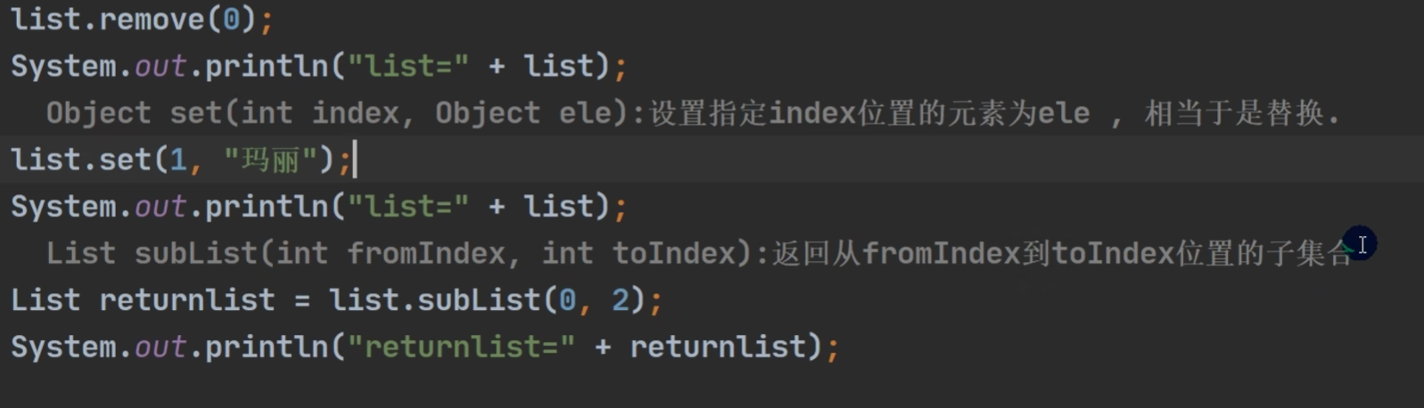 以下是List独有的重写了的方法: