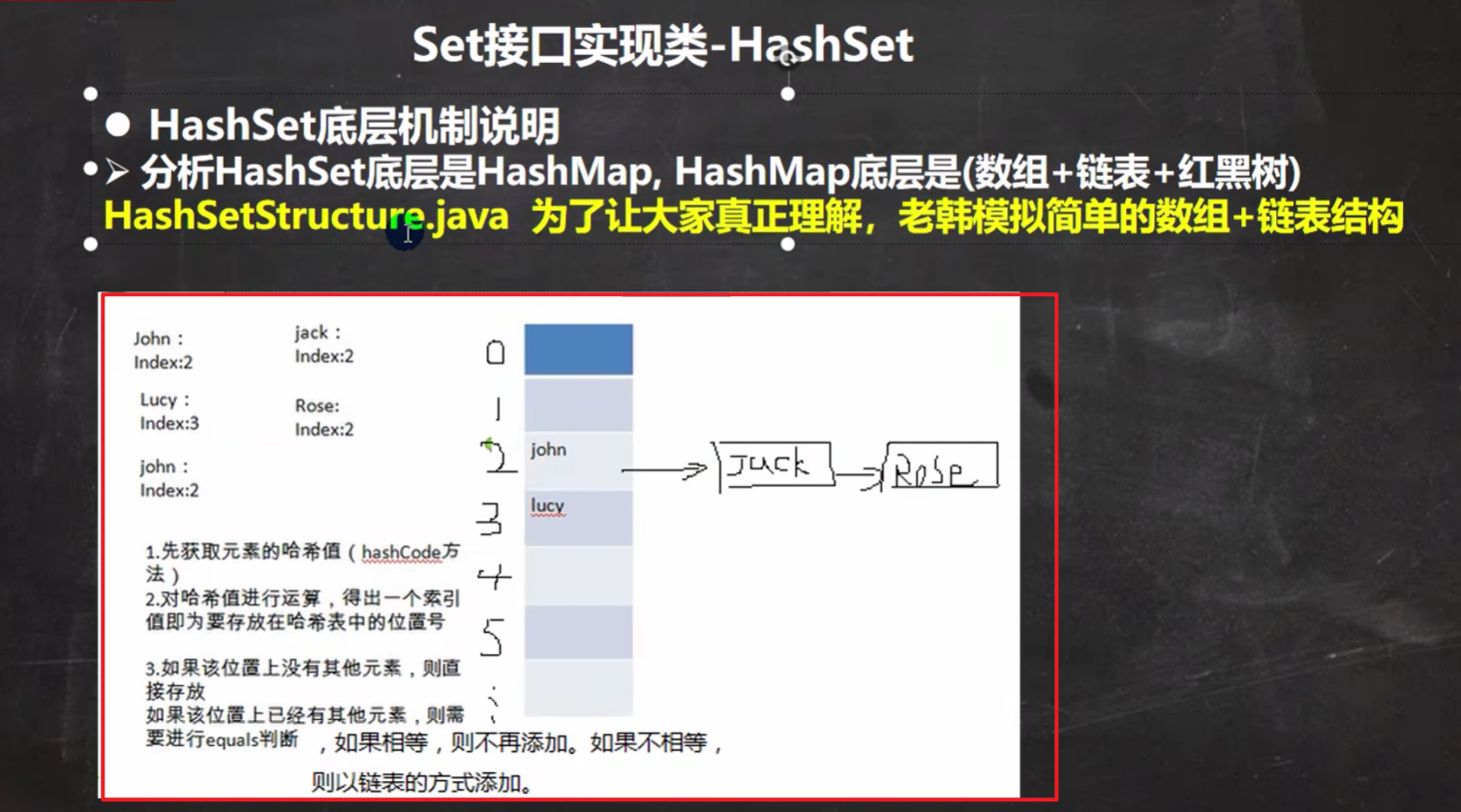 重写hashCode方法是为了计算出加入位置,然后加入用的