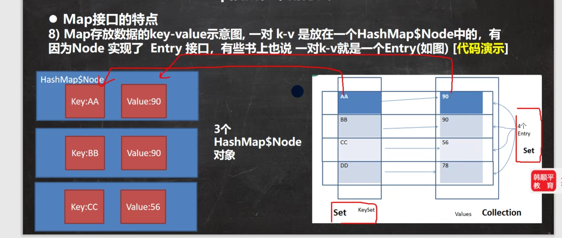 在Map类中一个包含 指向Key和对应Value的集合 为Entry,在MapSet中其运行类型是MapSet$Node,