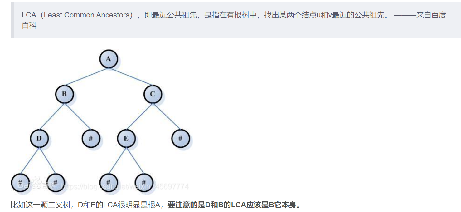 1.首先我们定义一个函数lca(int a,int b),其作用是返回a,b两点的最近公共祖先