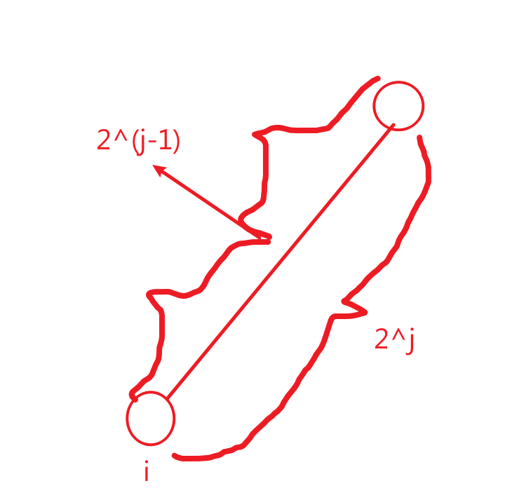 含义即是i点跳2^j步后超过root点 所到达的点一直都是0