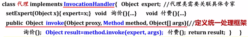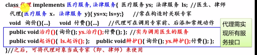 代理实现了专家的接口,即要实现其方法,这样可以在代理类中调用与专家同名的方法,所以可以将代理当专家来用,