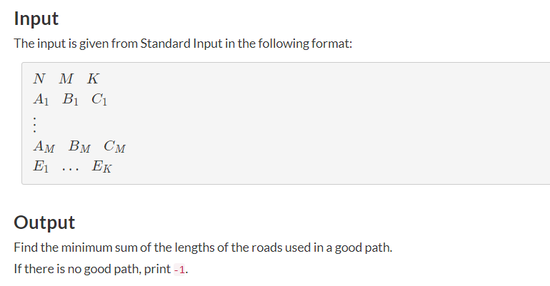 给定一个长度为K的序列E,由1到M之间的整数组成。使用道路从城镇1到城镇N的旅行方式称为好路径,如果: