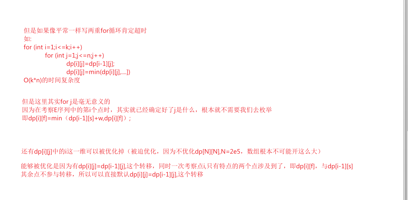 然后我想对E这个序列作手脚,但是最后我只能够想到对这个序列爆搜,对于序列上的每一个点看是否要选,然后能否到最终点