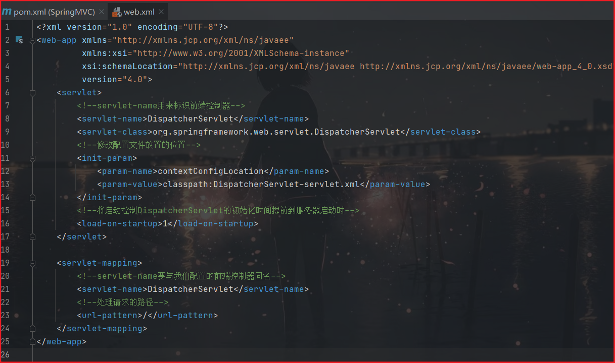 在web.xml中配置前端控制器:DispatcherServlet其是管理控制层的组件