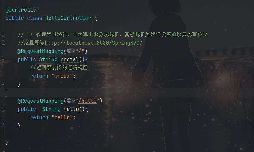 第一个是通过服务器解析路径自动加上我们配置的Application Context,路径为:http://localhost:8080/SpringMVC/hello
