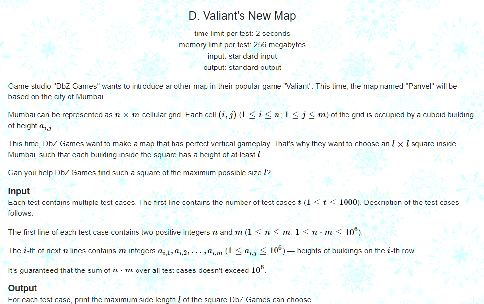 这道题没啥难度,但是有个转化十分巧妙,否则作不出(除非会二维区间的最值维护(二维ST表或二维线段树)):