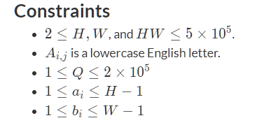 ,有Q次操作:每次操作给定(a,b),这个(a,b)将矩阵分成四部分