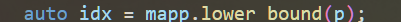map中有内置lower_bound(i)方法,可以二分找到最小的key值>=i的迭代器指针