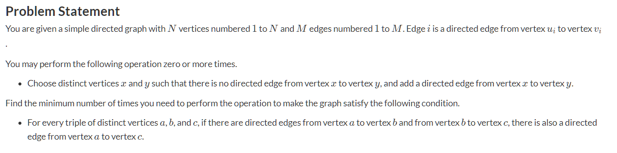 对于每一条可以形成的链,上面的点都要与下面可到达的点连边(除去原图本来就连上的边)
