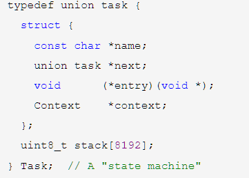 Area stack = (Area) { &task->context + 1, task + 1 };