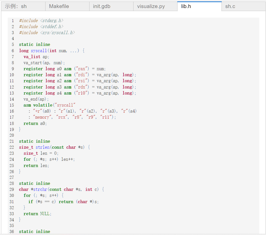 其作用完全是用来实现我们c库中常用的API,但是这份代码没有用到C库