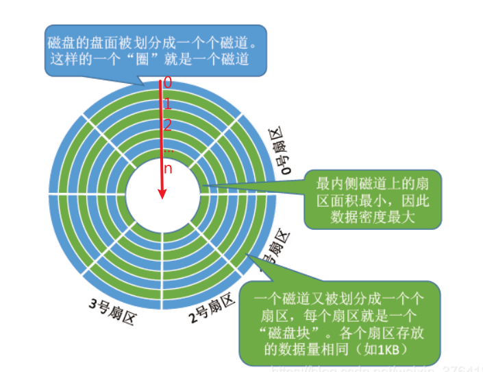 磁盘中的磁道是从最外围开始编号的,即最外围的磁道是0,然后向里面逐渐增加