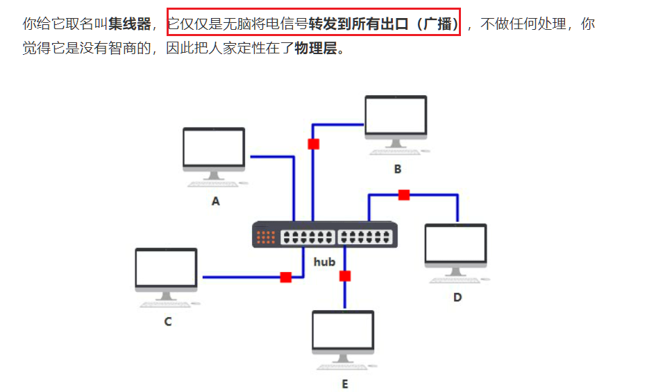 不管是使用集线器还是交换机,有一个无法逃脱的点是: