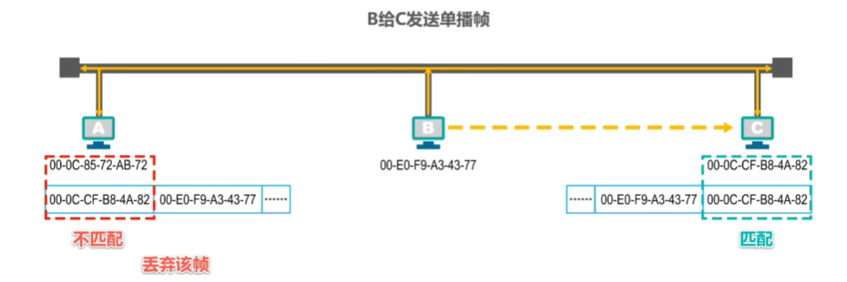 然后根据MAR帧在总线型局域网中的单播,就传给了下一个路由器/交换机