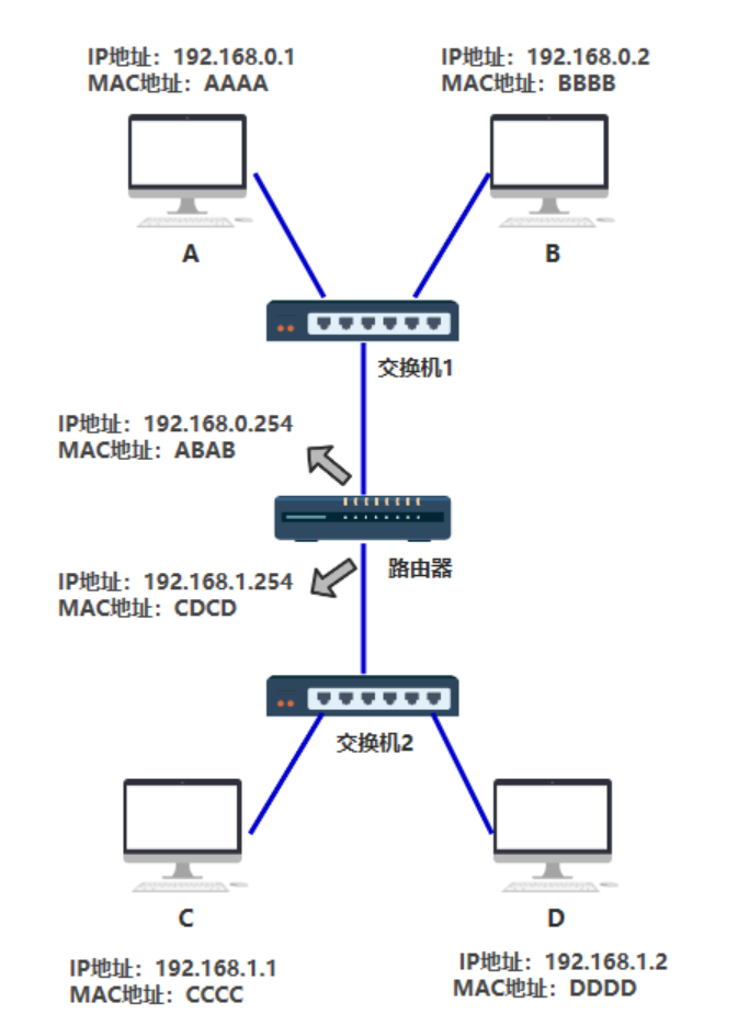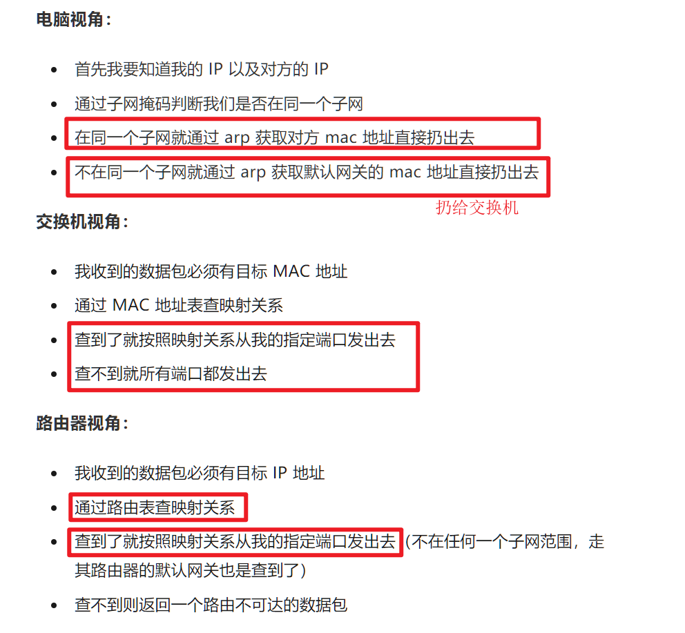 结合ARP协议,将IP->MAC(注意使用MAC地址,只能在局域网中使用,即只能在同一个网络中使用)