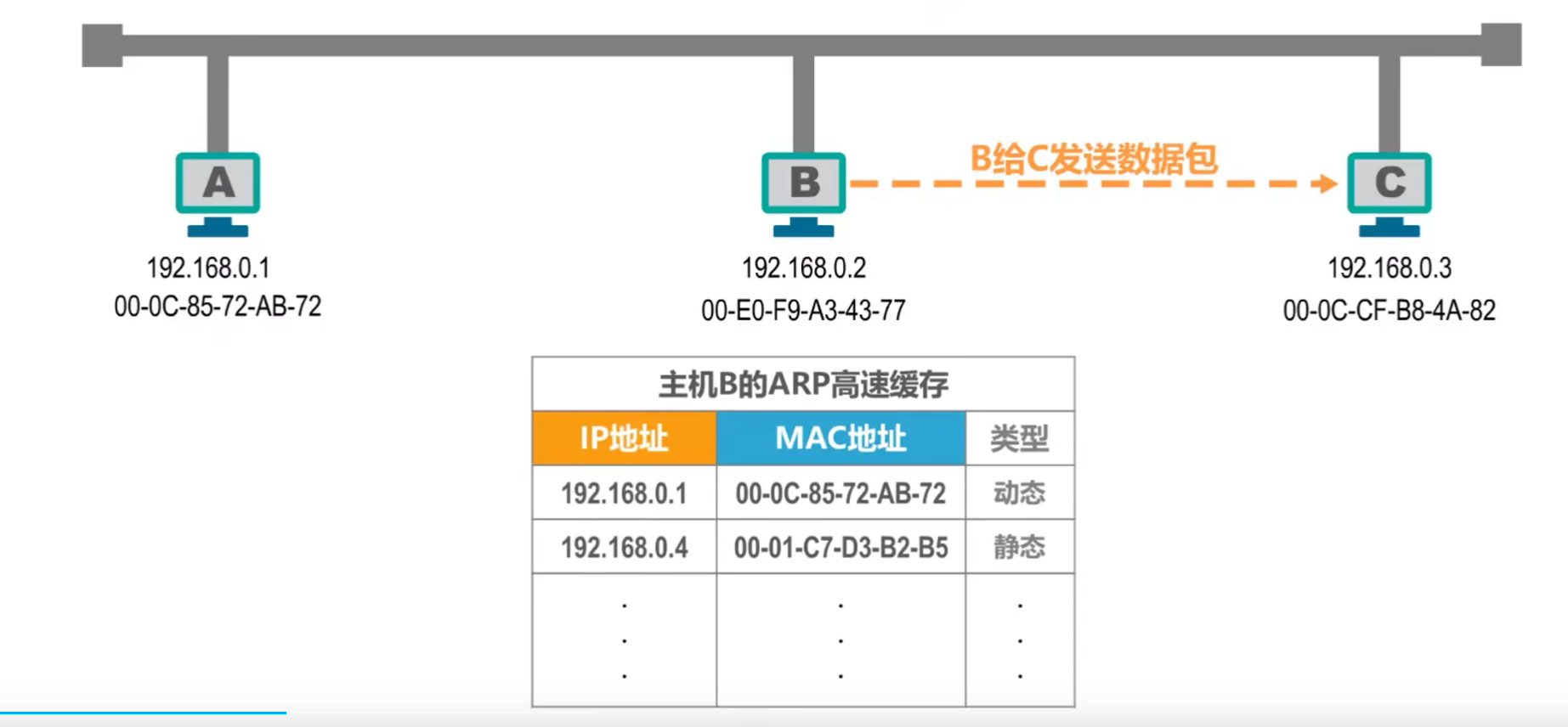 当主机B给主机C发送数据包,首先肯定是知道了源IP与目的IP