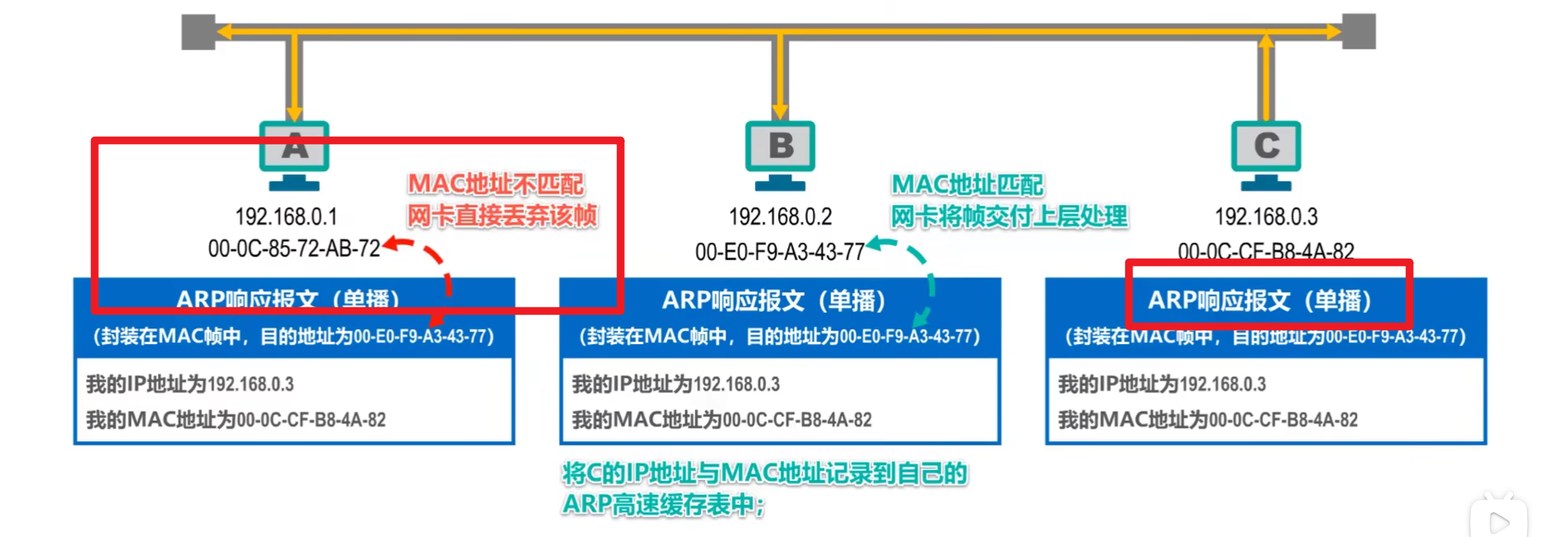 还需要注意的是当目的MAC地址的主机受到后会讲源MAC地址的主机MAC地址首先