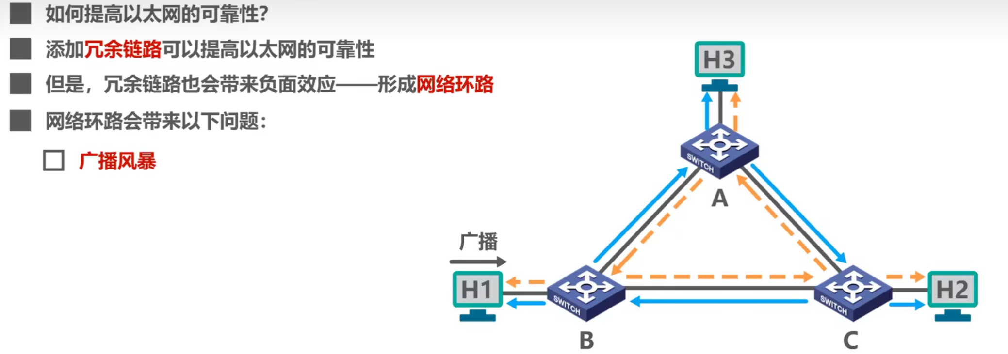 这导致B->A->C->B 与 B->C->A->B 这样交换机之间不断循环转发的过程