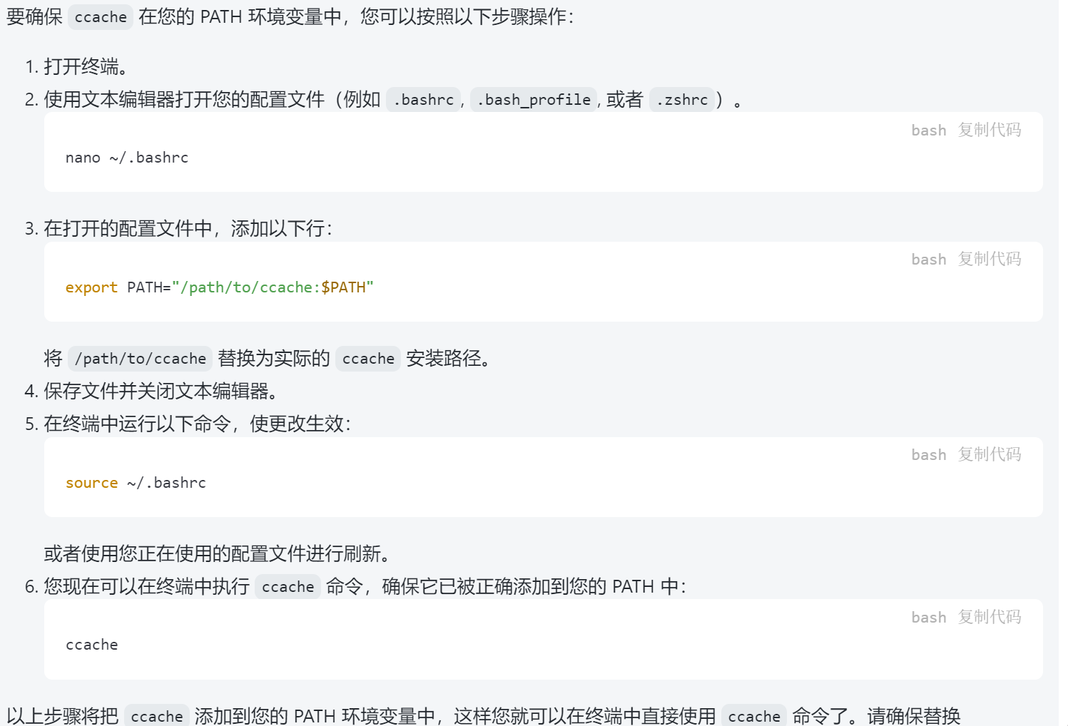 这个时候就有个难题了,什么叫做 just make sure that ccache is in your PATH,应该怎么做?
