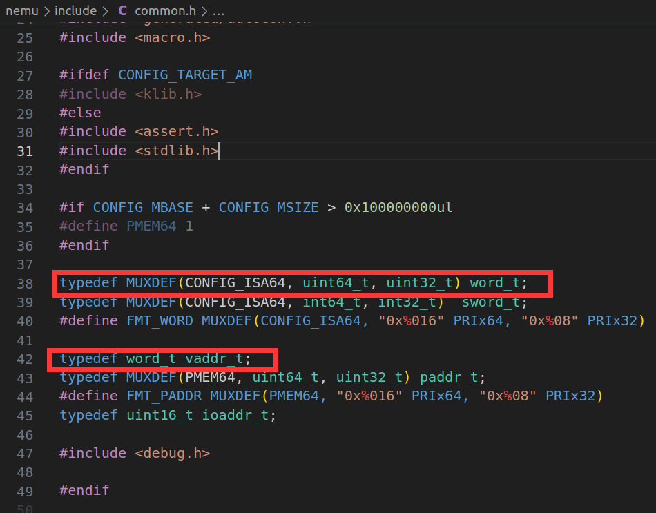 在这文件下引入的头文件common.h中我们可以发现word_t 和 vaddr_t的定义:
